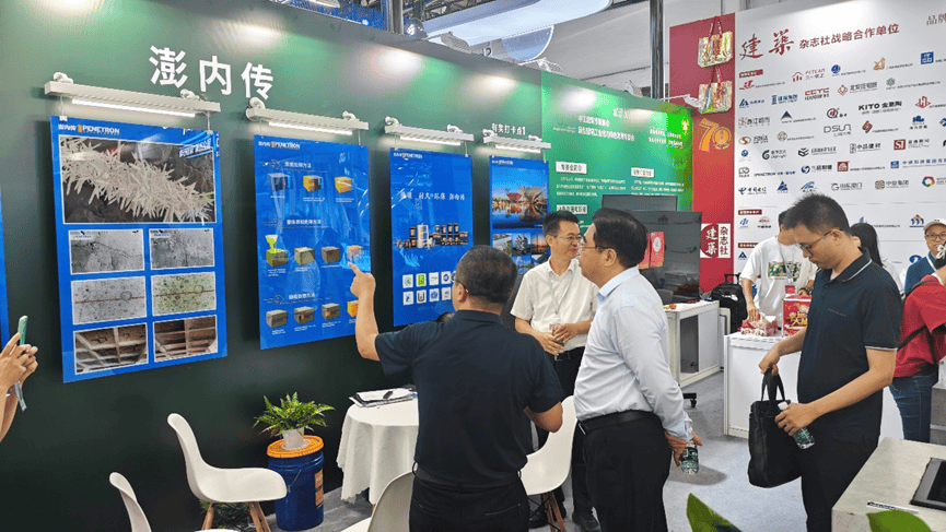 北京澎內(nèi)傳公司展出了全球領(lǐng)先的混凝土滲透結(jié)晶自愈合技術(shù)以及系統(tǒng)產(chǎn)品,展板上生動形象的展現(xiàn)出滲透結(jié)晶的技術(shù)原理、電鏡下的結(jié)晶形貌和實效工程照片等;實物水池模型與試塊直觀地看到結(jié)晶自愈合后的功效。澎內(nèi)傳先進的滲透結(jié)晶科技不僅能從根本上解決混凝土結(jié)構(gòu)的滲漏水頑疾,還能提高混凝土整體的耐久性,延長結(jié)構(gòu)的使用壽命60年。產(chǎn)品低碳環(huán)保,為我國造就高質(zhì)量建筑和可持續(xù)發(fā)展的目標提供堅實的技術(shù)基礎(chǔ)和科學的安全保障,更好的滿足人們對好房子的需求。